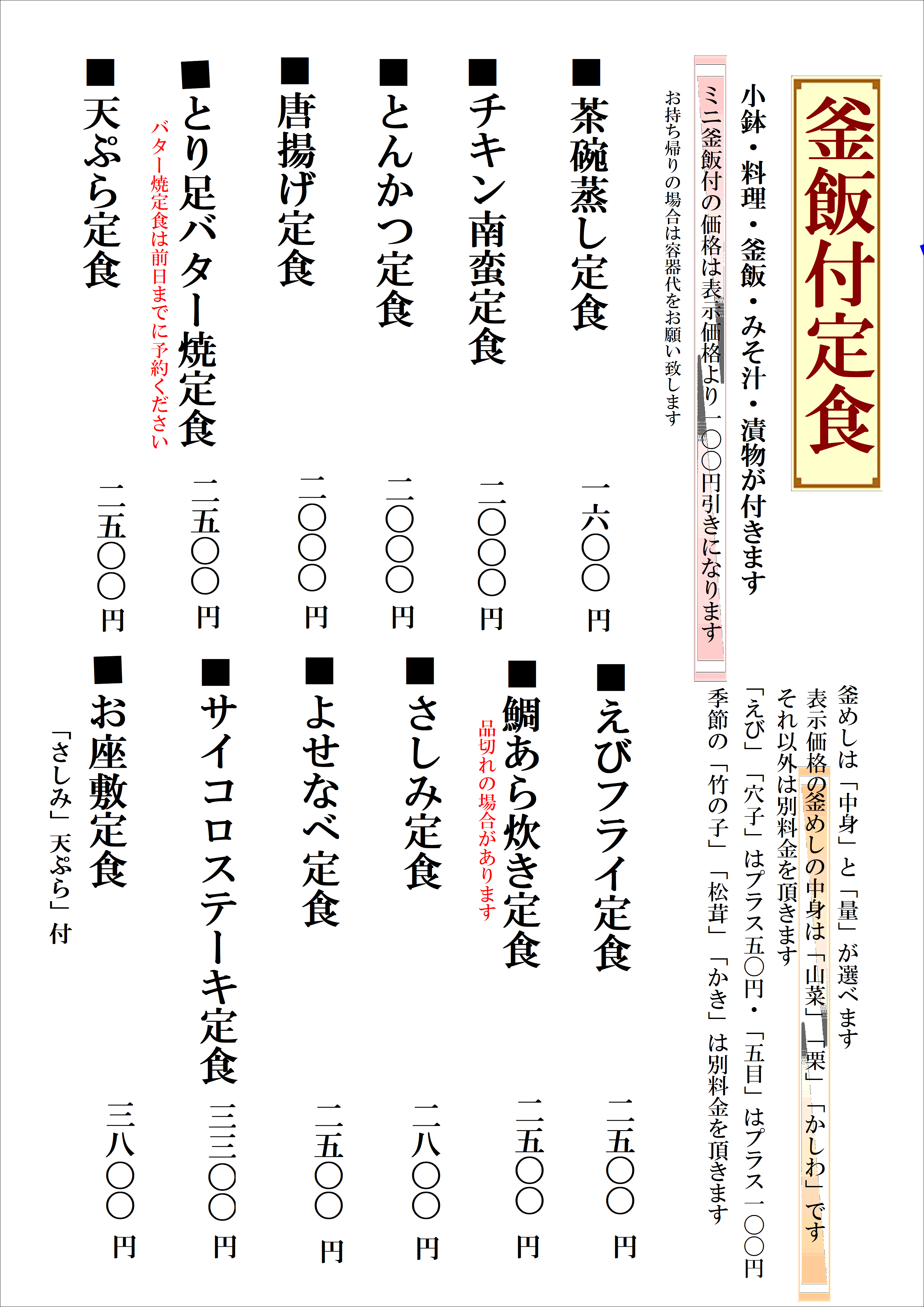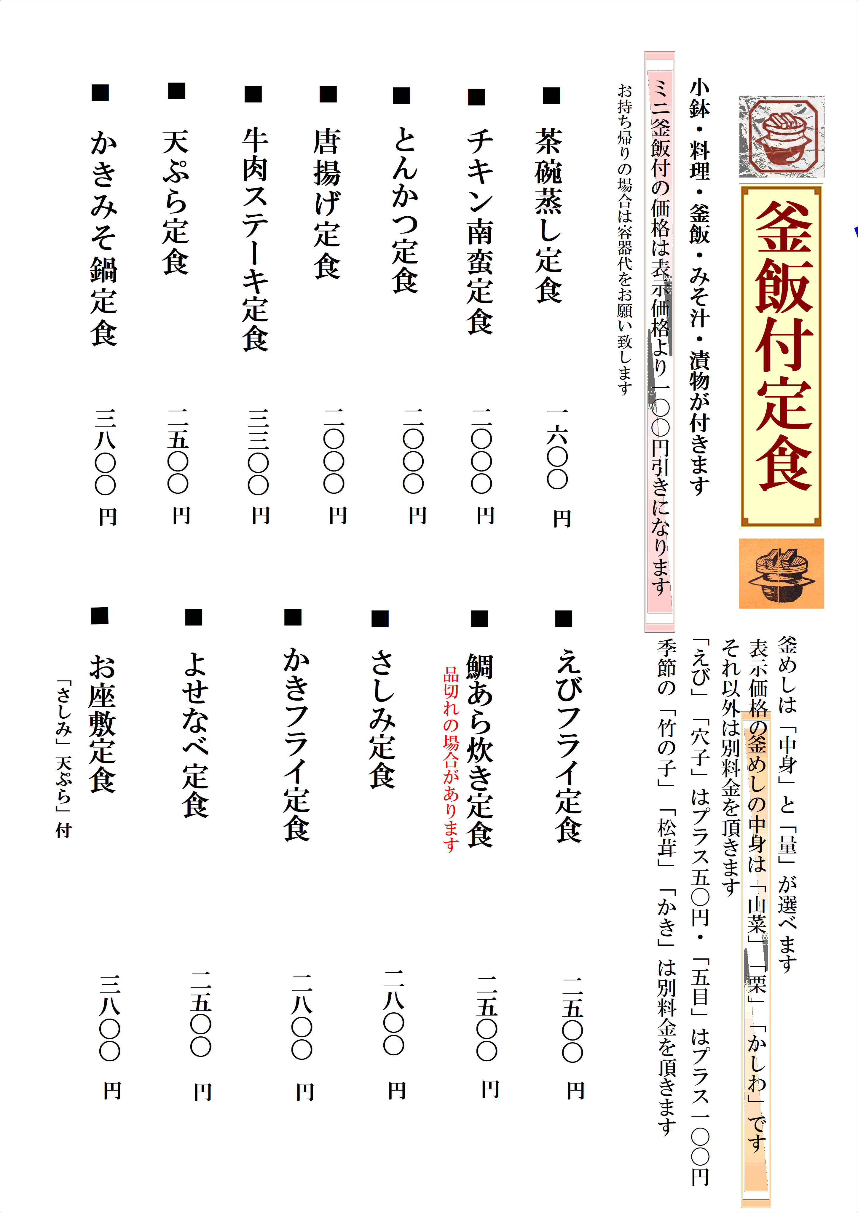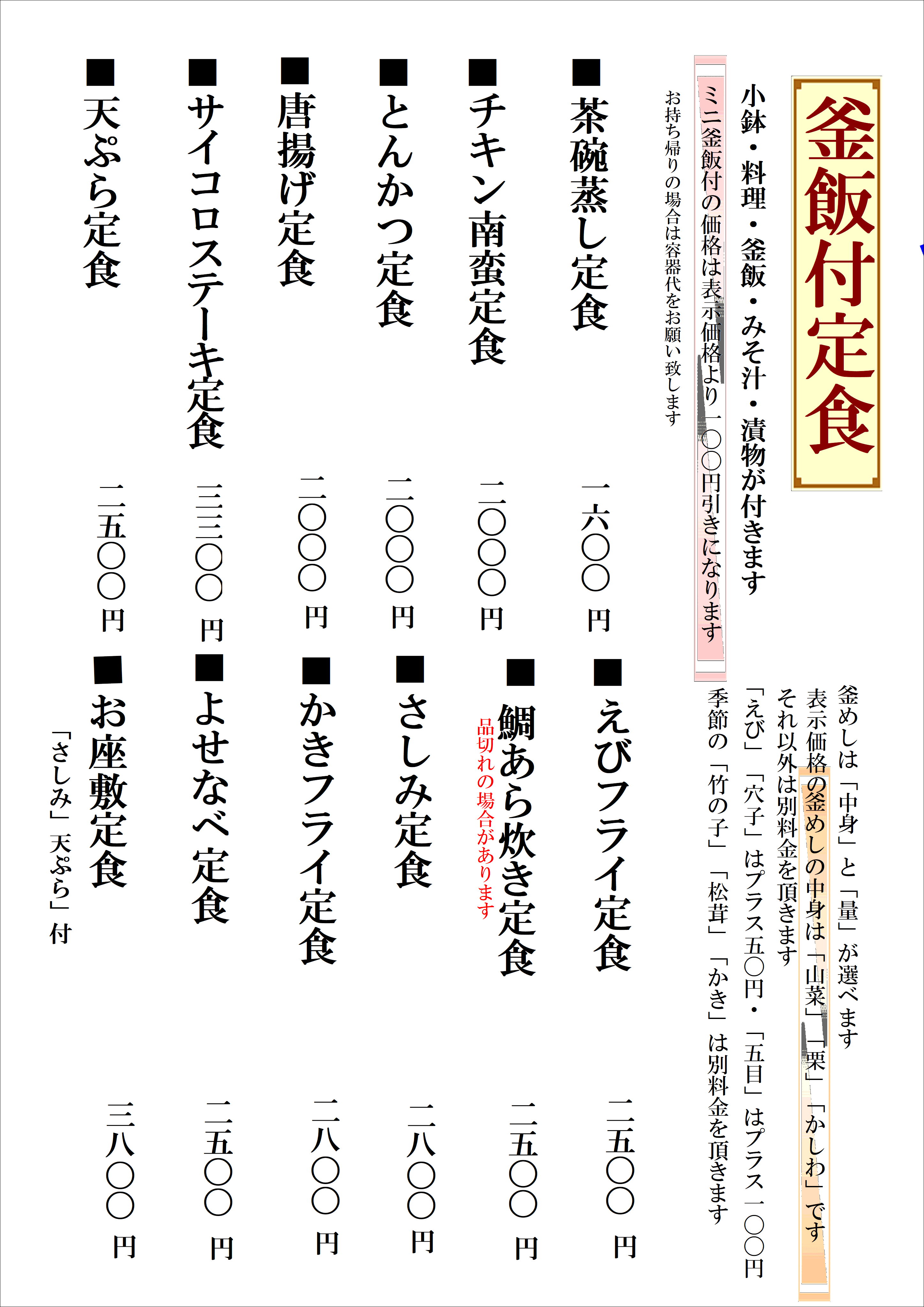 よいきげんは岡山表町の新西大寺町商店街にある釜めし・和食・季節料理の店です